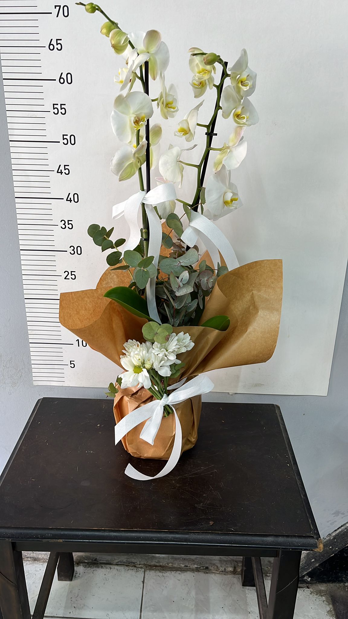 2 Dallı Beyaz Orkide Özel Süslemeli