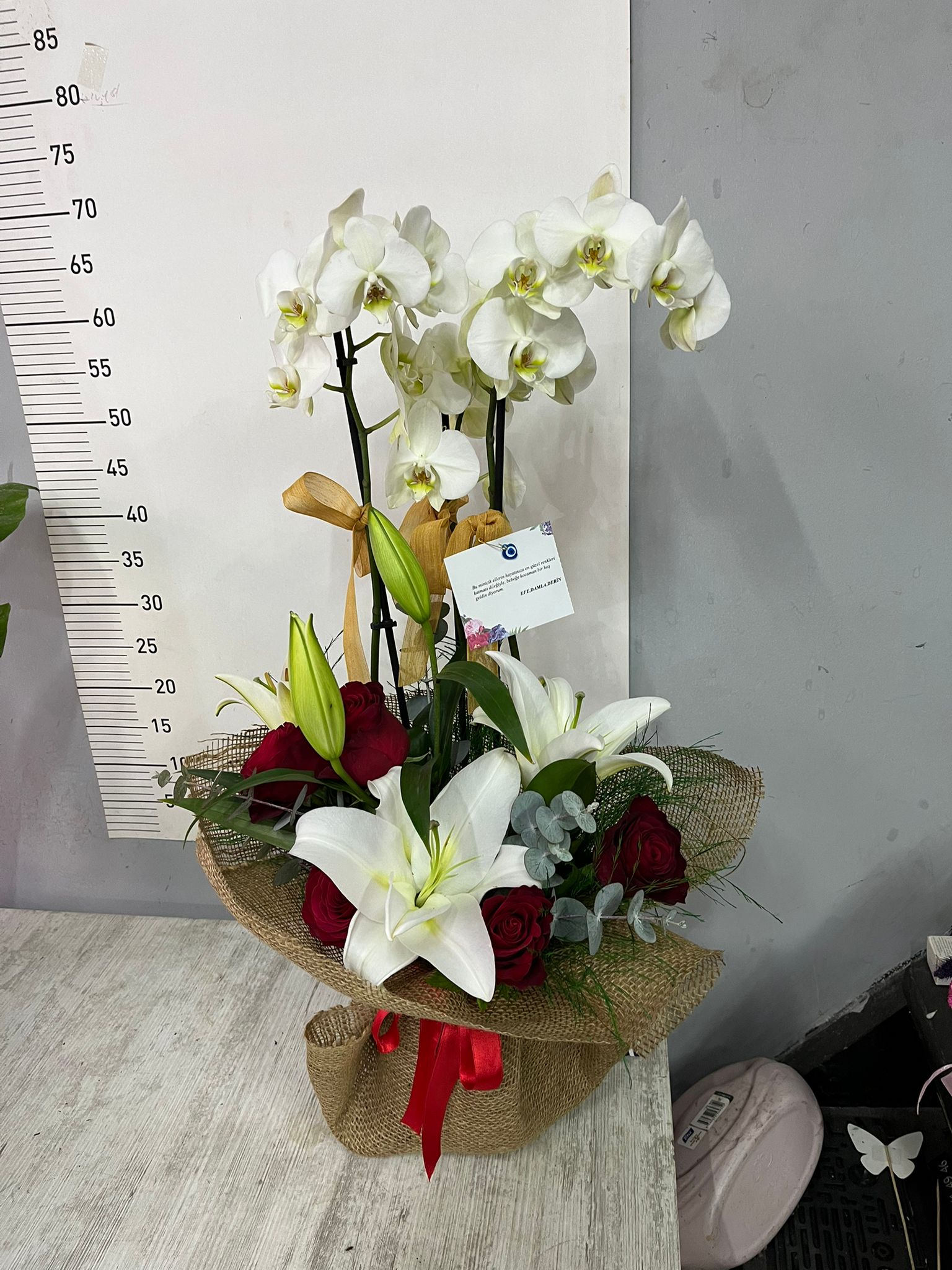 Orkide Lilyum Ve Kırmızı Gül